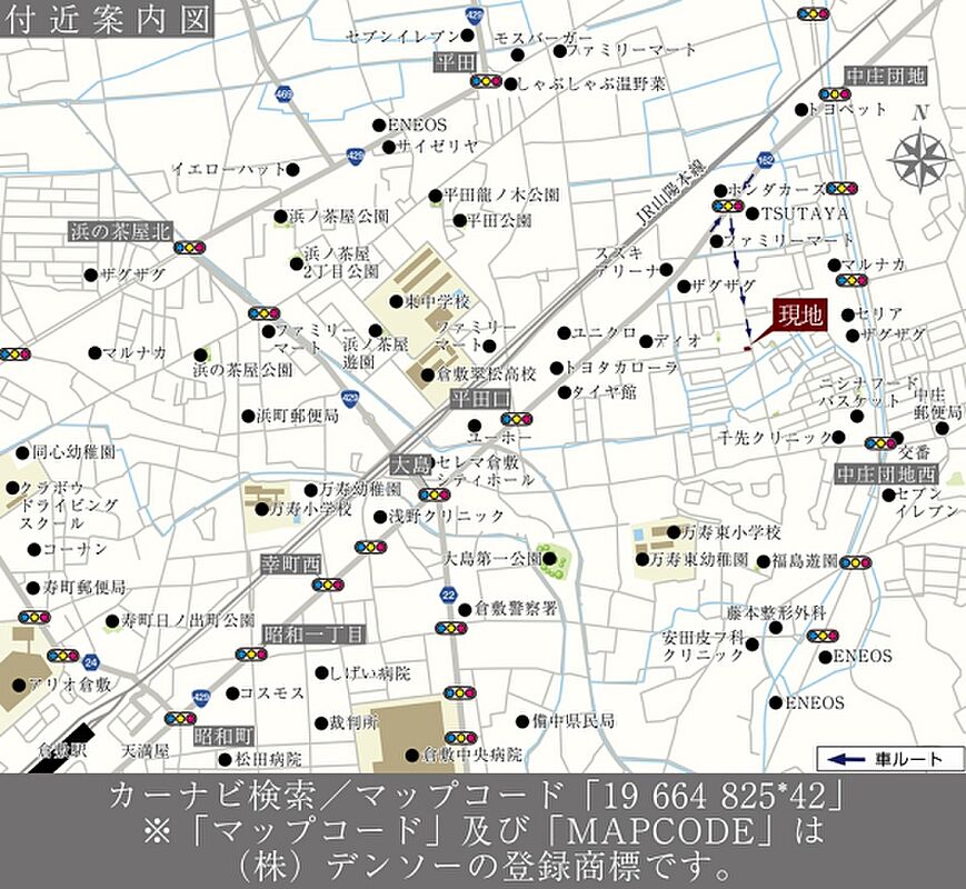 - ※地図上に表示される各種アイコンなどの情報は、おおよその所在地を表すものであり、物件・施設などの地点を保証するものではありません。