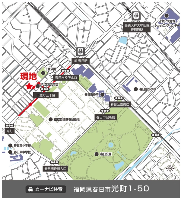 JR鹿児島本線「春日」駅 徒歩7分 西鉄天神大牟田線「春日原」駅 徒歩14分 |