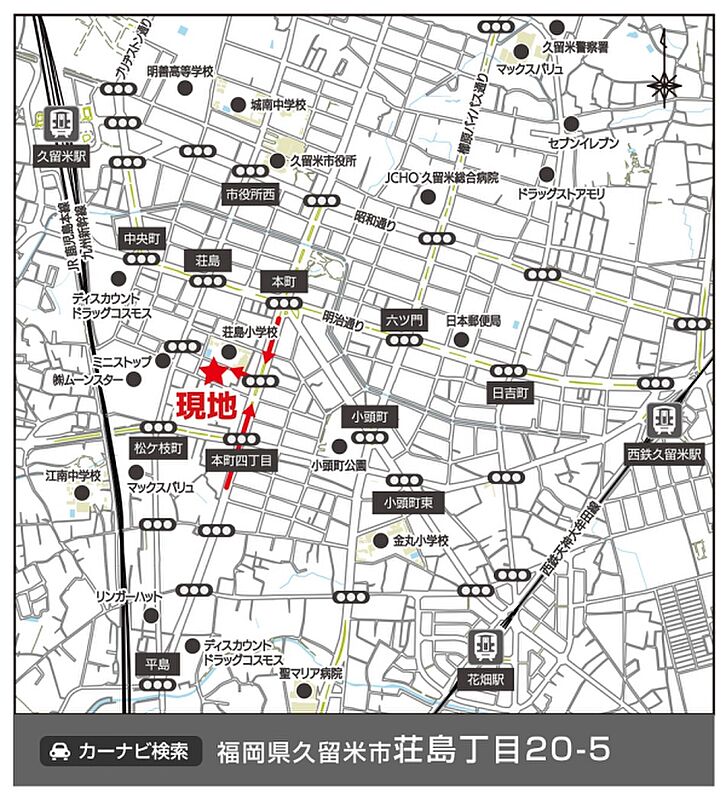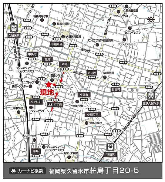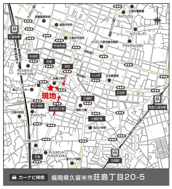 JR九州新幹線「久留米」駅 徒歩14分 西鉄天神大牟田線「花畑」駅 徒歩18分 |