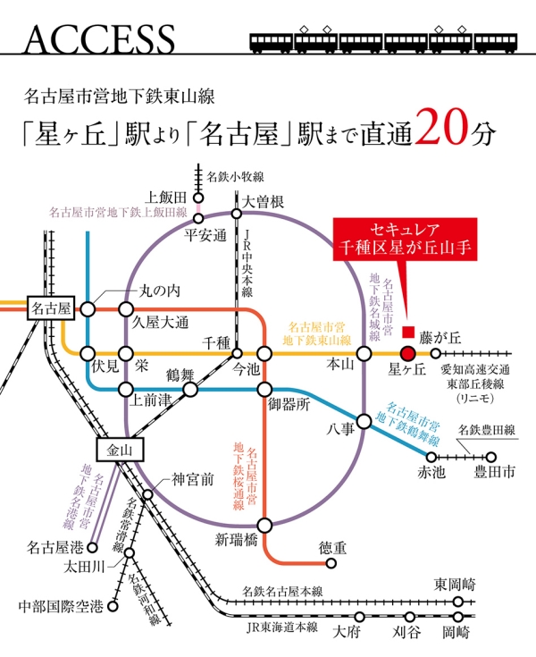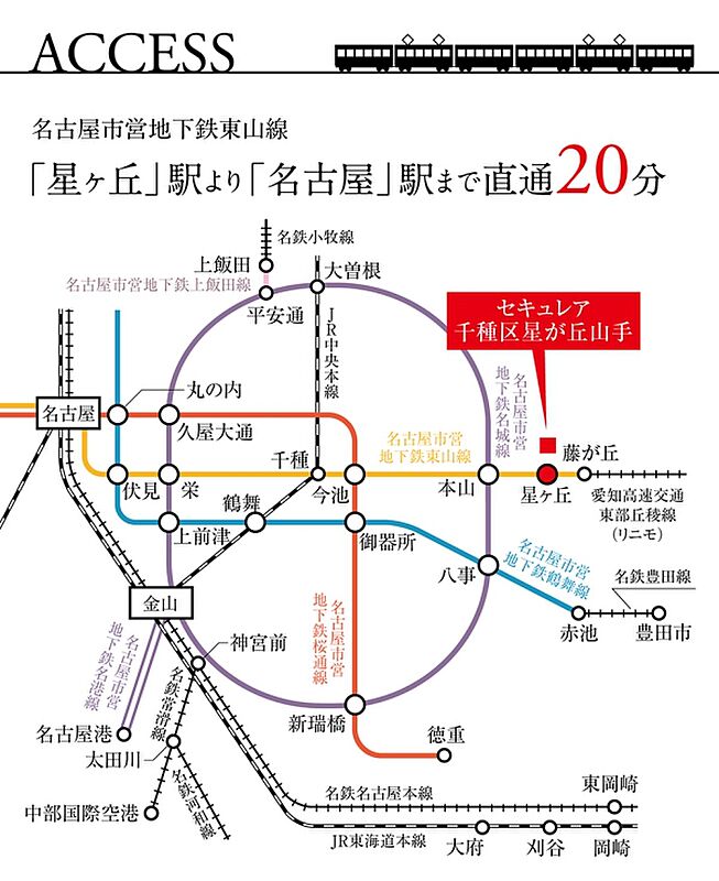 「星ヶ丘」駅から「名古屋」駅まで直通20分