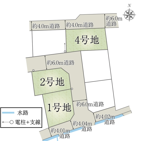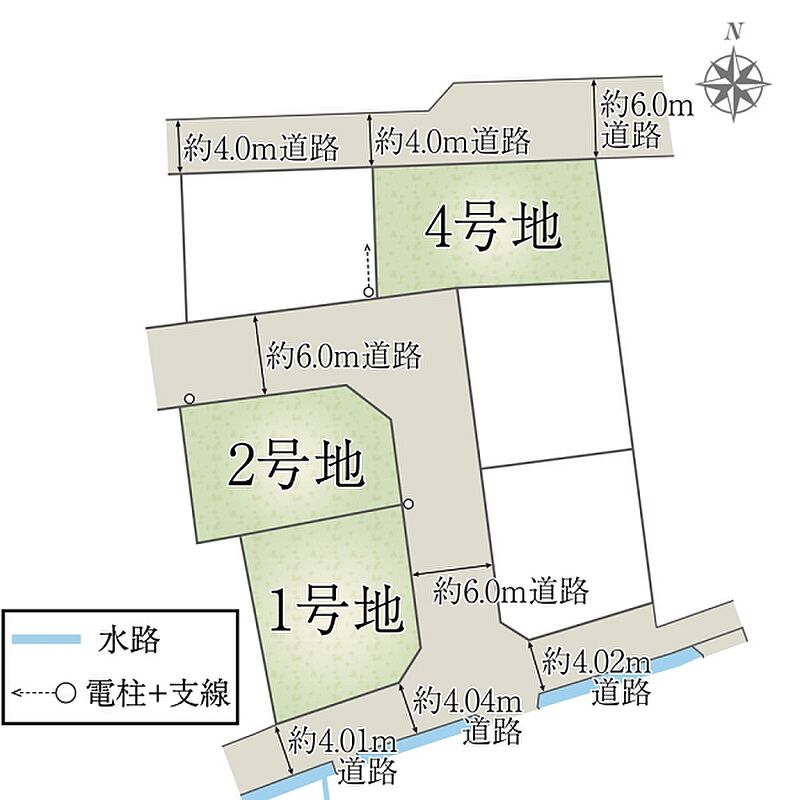 | 建物面積 | - | 土地面積 | 162.08m2(1号地)、151.99m2(2号地)、163.79m2(4号地) 私道負担なし |