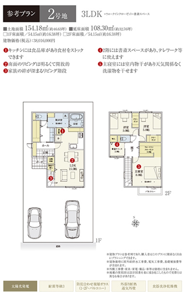 | 建物面積 | - | 土地面積 | 154.18m2(2号地) 私道負担なし |