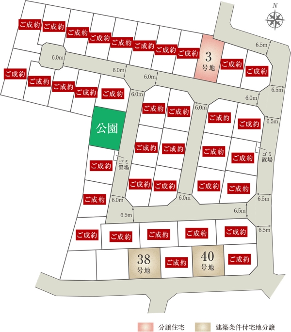 | 建物面積 | - | 土地面積 | 165.01m2(38号地)、165.00m2(40号地) 全て私道負担なし |