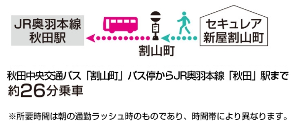 JR秋田新幹線「秋田」駅 徒歩62分~63分 JR奥羽本線「秋田」駅 徒歩62分~63分 |