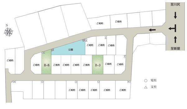 | 建物面積 | - | 土地面積 | 184.26m2 私道負担あり 113m2のうち、34分の1の負担持分(B-3号地)、205.16m2 私道負担あり 113m2のうち、34分の1の負担持分(B-8号地) |