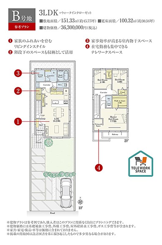 | 建物面積 | - | 土地面積 | 151.33m2(B号地) 私道負担なし |