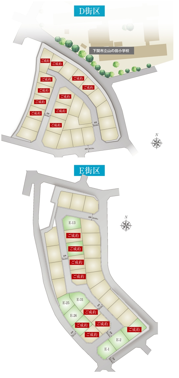 | 建物面積 | - | 土地面積 | 160.33m2(E-13号地)~184.78m2(E-2号地) 全て私道負担なし |
