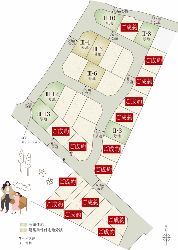 | 建物面積 | - | 土地面積 | 150.44m2(III-3号地)、150.44m2(III-4号地)、173.58m2(III-6号地) 私道負担なし |