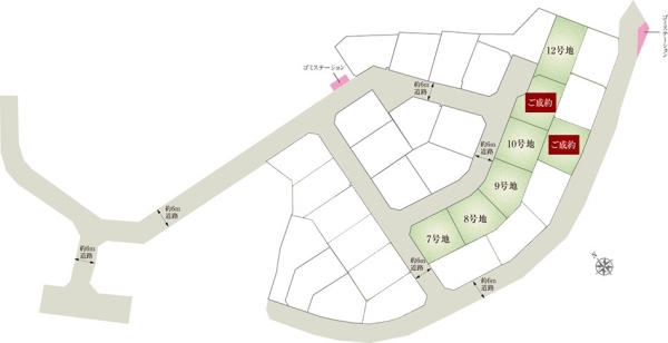 | 建物面積 | - | 土地面積 | 181.42m2(7号地)、181.36m2(8号地)、180.97m2(9号地)、181.38m2(10号地)、204.93m2(12号地) 私道負担なし |