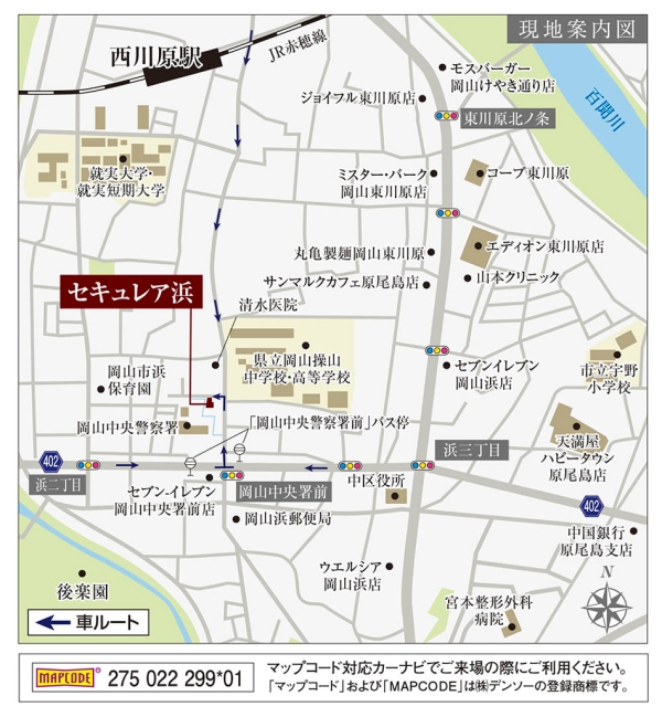 - ※地図上に表示される各種アイコンなどの情報は、おおよその所在地を表すものであり、物件・施設などの地点を保証するものではありません。