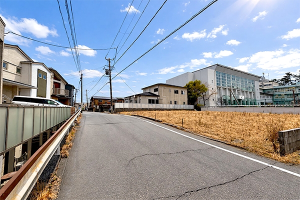 前面道路は6m以上あり、車の出し入れやすれ違いにもゆとりがあります
