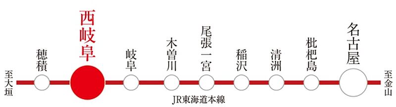JR東海道本線「西岐阜」駅まで徒歩4分。電車を使っての通勤、通学に便利です。