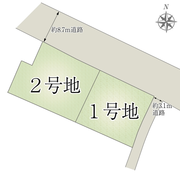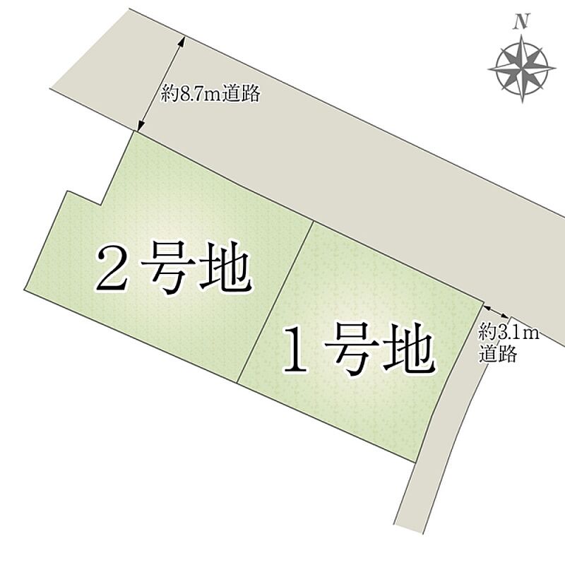 | 建物面積 | - | 土地面積 | 176.15m2(1号地)、223.72m2(2号地) 全て私道負担なし |