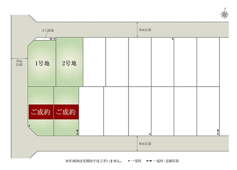 | 建物面積 | - | 土地面積 | 191.41m2(1号地)、198.68m2(2号地) 全て私道負担なし |