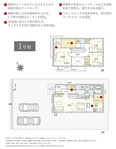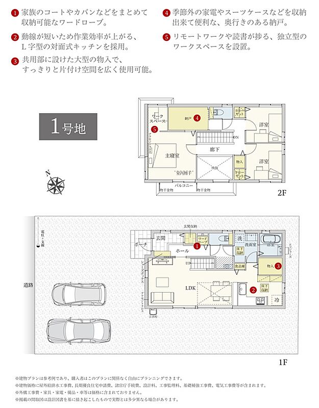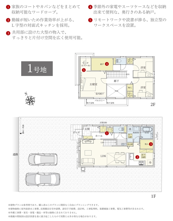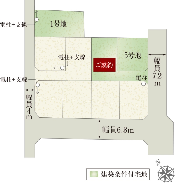 | 建物面積 | - | 土地面積 | 193.41m2(1号地)、159.35m2(5号地) 全て私道負担なし |