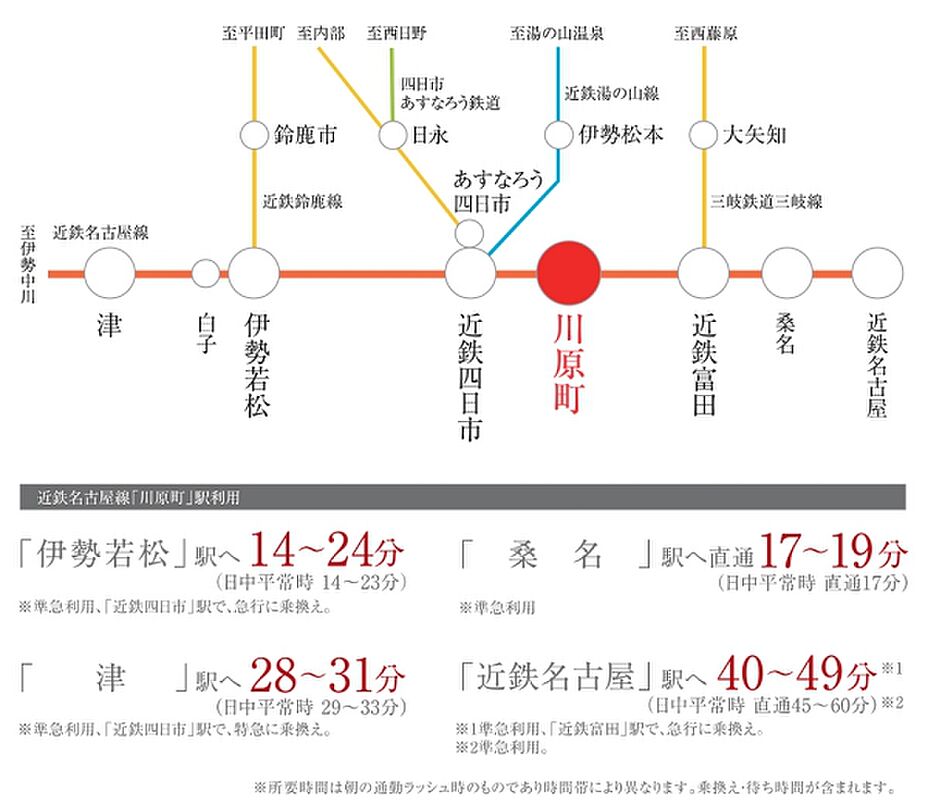 近鉄名古屋線「川原町」駅 徒歩3分~4分 近鉄名古屋線「近鉄四日市」駅 徒歩12分~13分 |