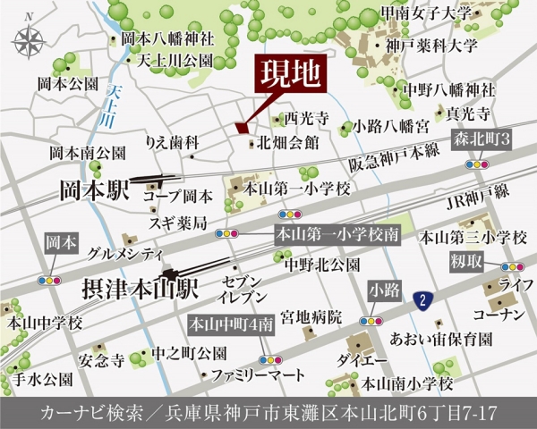 - 阪急神戸本線「岡本」駅 徒歩5分~6分JR東海道・山陽本線「摂津本山」駅 徒歩9分~10分