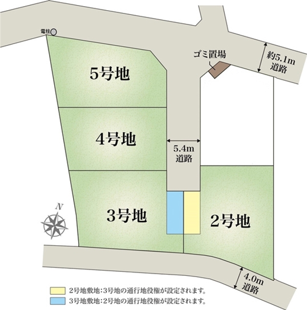 | 建物面積 | - | 土地面積 | 224.95m2 私道負担あり 125.85m2のうち、5分の1の負担持分(2号地)、220.53m2 私道負担あり 125.85m2のうち、5分の1の負担持分(3号地)、172.88m2 私道負担あり 125.85m2のうち、5分の1の負担持分(4号地)、186.81m2 私道負担あり 125.85m2のうち、5分の1の負担持分(5号地) |