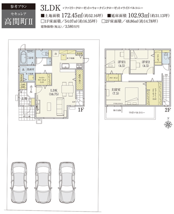 | 建物面積 | - | 土地面積 | 172.45m2(2号地) 私道負担なし |