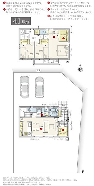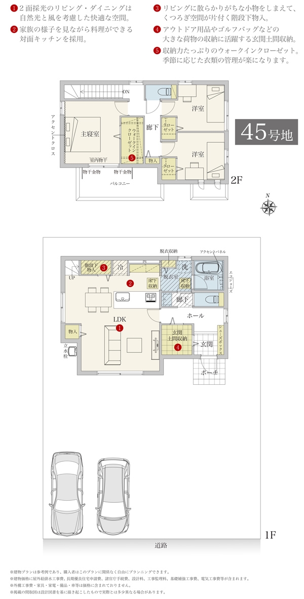 | 建物面積 | - | 土地面積 | 224.70m2(41号地)、230.22m2(44号地)、214.62m2(45号地)、227.56m2(46号地) 私道負担なし |