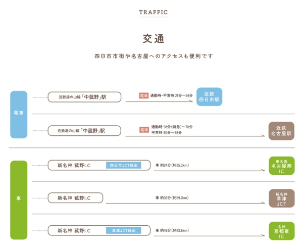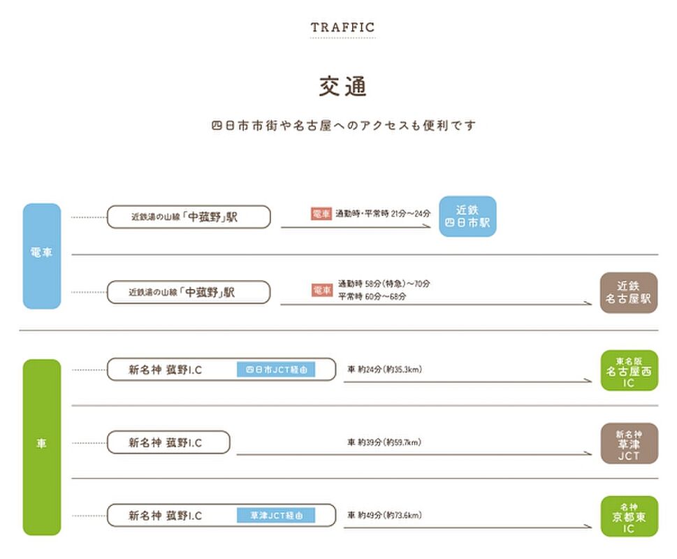 近鉄湯の山線「中菰野」駅 徒歩19分~20分 |