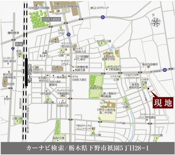 JR東北本線「自治医大」駅まで徒歩15分の場所に位置します。