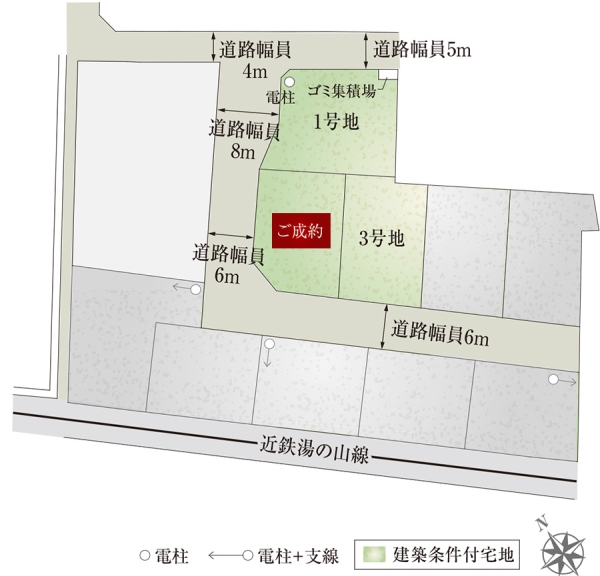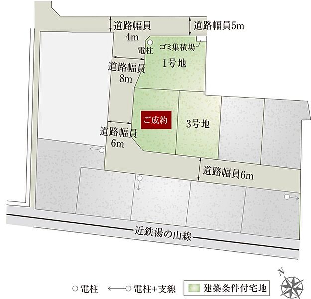 | 建物面積 | - | 土地面積 | 215.21m2(1号地)、177.82m2(3号地) 全て私道負担なし |