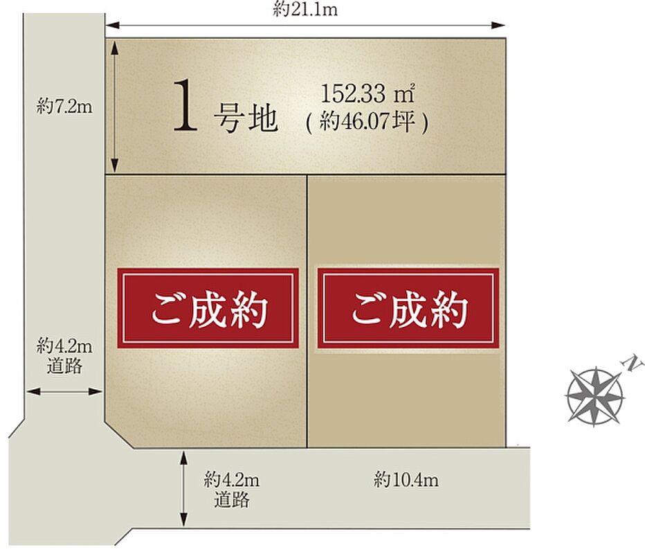 | 建物面積 | - | 土地面積 | 152.33m2(1号地) 私道負担なし |