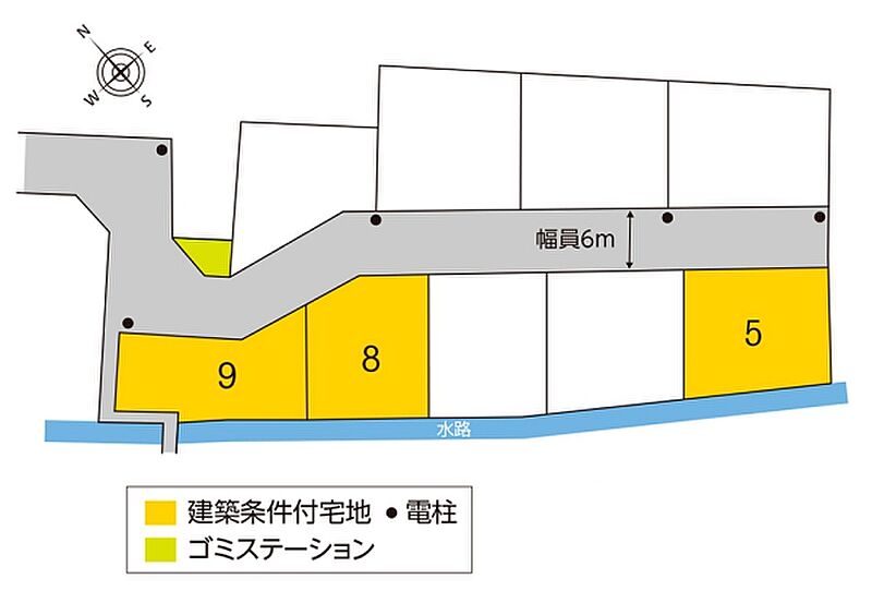 | 建物面積 | - | 土地面積 | 184.14m2(5号地)、172.73m2(8号地)、167.05m2(9号地) 私道負担なし |