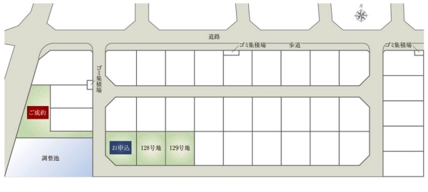 | 建物面積 | - | 土地面積 | 200.85m2(128号地)、200.86m2(129号地) 全て私道負担なし |