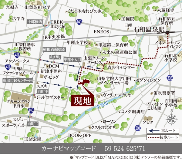 JR中央本線「石和温泉」駅 徒歩27分~28分 |