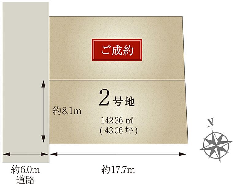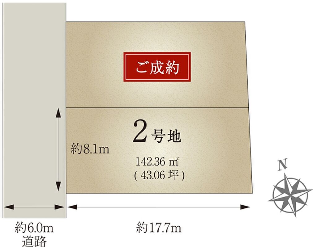 | 建物面積 | - | 土地面積 | 142.36m2(2号地) 私道負担なし |