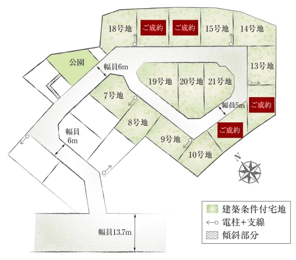 | 開発面積 | 4301.96m2 | 建ぺい率・容積率 | 60%(7号地、19号地、21号地は70%)・200% |