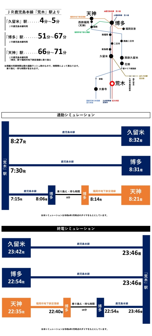 JR鹿児島本線「荒木」駅 徒歩11分~13分 西鉄天神大牟田線「安武」駅 徒歩15分~18分 |