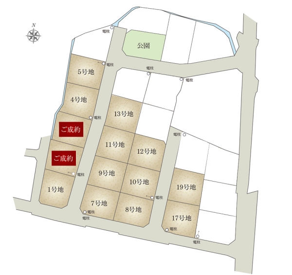 | 建物面積 | - | 土地面積 | 210.32m2(8号地)~222.54m2(17号地) 全て私道負担なし |