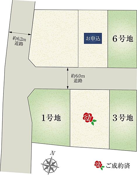 | 建物面積 | - | 土地面積 | 174.98m2(1号地)、140.00m2(3号地)、125.56m2(6号地) 私道負担なし |