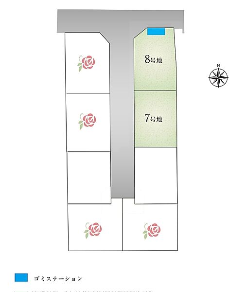 | 建物面積 | - | 土地面積 | 93.08m2(7号地)、96.50m2(8号地) 全て私道負担なし |