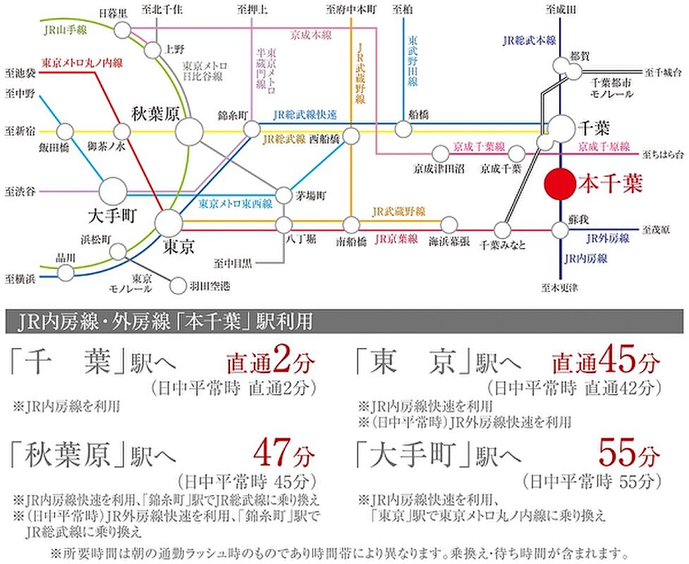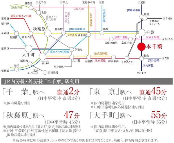 JR外房線「本千葉」駅 徒歩7分~7分 千葉都市モノレール「県庁前」駅 徒歩10分~10分 JR総武本線「千葉」駅 徒歩23分~23分 |