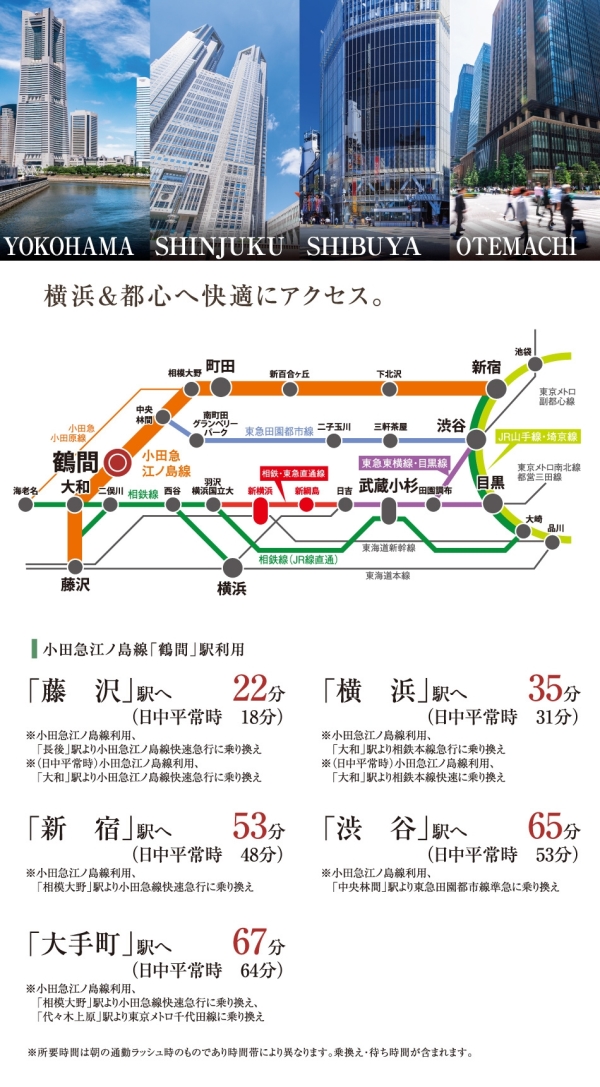 小田急電鉄江ノ島線「鶴間」駅までフラットアプローチで徒歩13分。