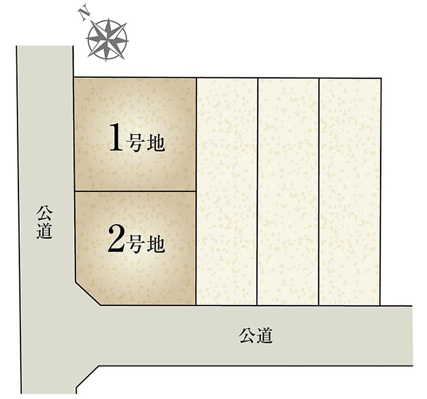 | 建物面積 | - | 土地面積 | 133.20m2(1号地)、127.97m2(2号地) 全て私道負担なし |