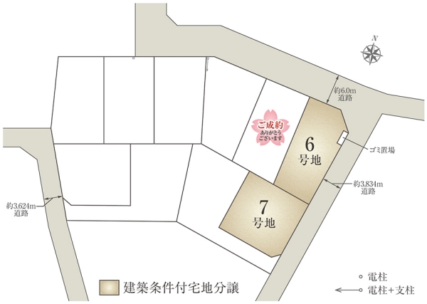 | 建物面積 | - | 土地面積 | 161.79m2(6号地)、165.01m2(7号地) 全て私道負担なし |