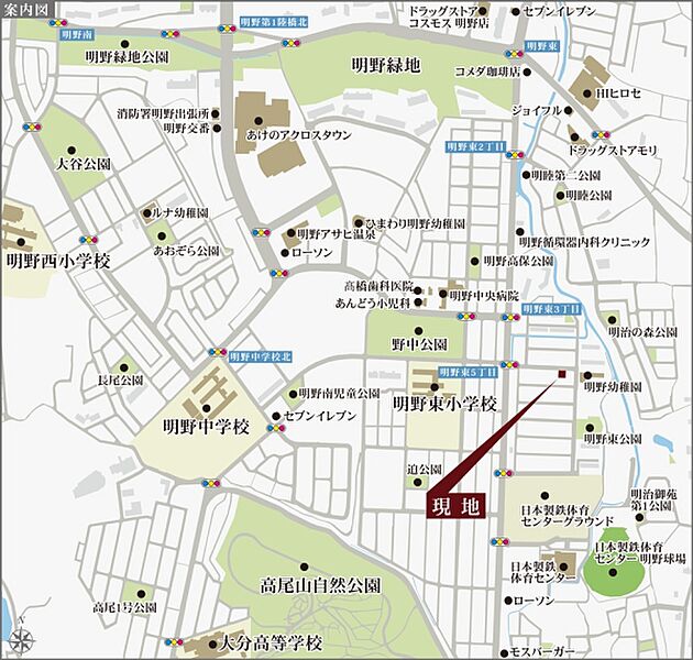 - ※地図上に表示される各種アイコンなどの情報は、おおよその所在地を表すものであり、物件・施設などの地点を保証するものではありません。