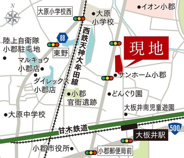 甘木鉄道「大板井」駅 徒歩6分~8分 西鉄天神大牟田線「西鉄小郡」駅 徒歩15分~17分 |