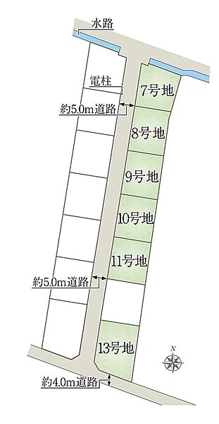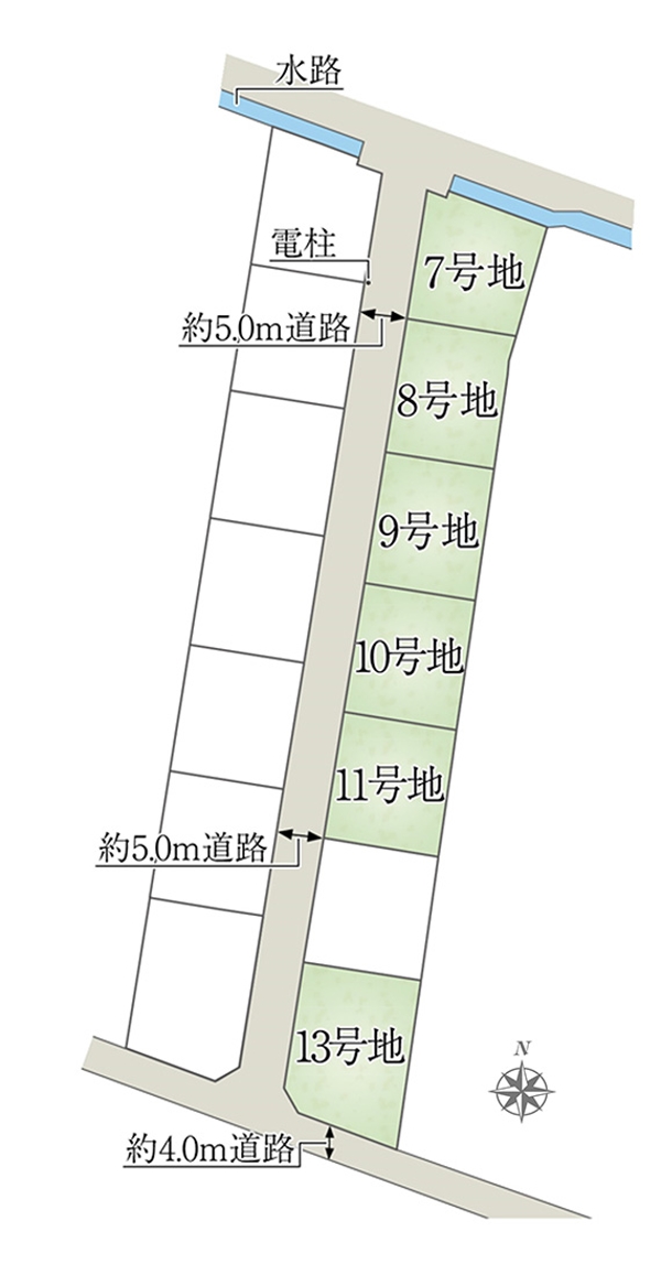 | 建物面積 | - | 土地面積 | 164.28m2(7号地)~211.70m2(13号地) 全て私道負担なし |