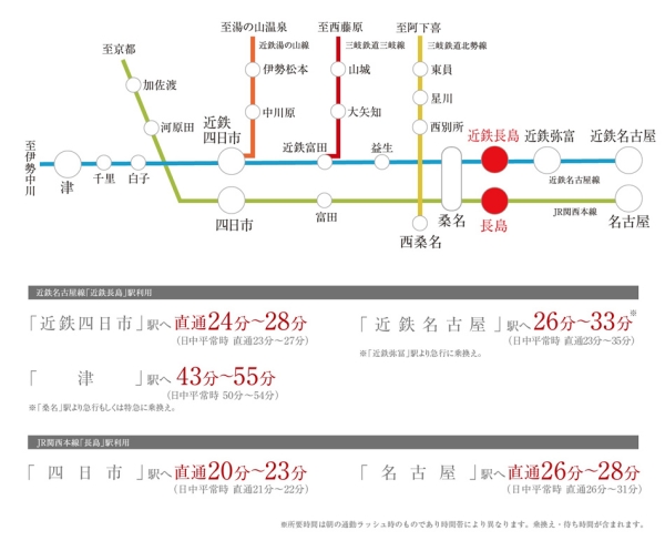 JR関西本線「長島」駅 徒歩6分 近鉄名古屋線「近鉄長島」駅 徒歩8分 |