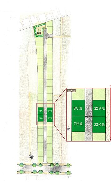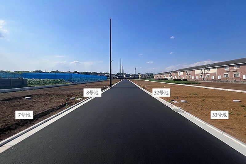 | 建物面積 | - | 土地面積 | 115.01m2(7号地)、115.02m2(8号地)、115.02m2(32号地)、115.02m2(33号地) 全て私道負担なし |
