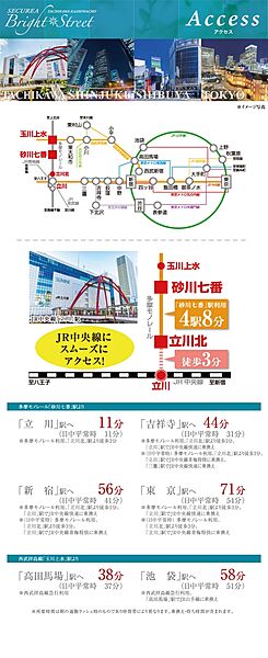 多摩都市モノレール「砂川七番」駅 徒歩10分~11分 西武拝島線「玉川上水」駅 徒歩14分~14分 |
