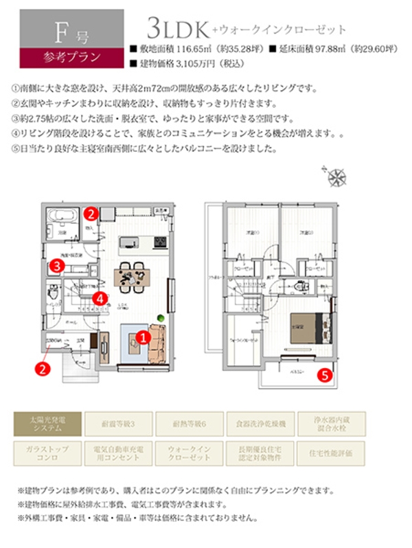 - ※完成予想図やCG合成画像は、門塀・植栽・庭・外観等、実際とは多少異なる場合があります。