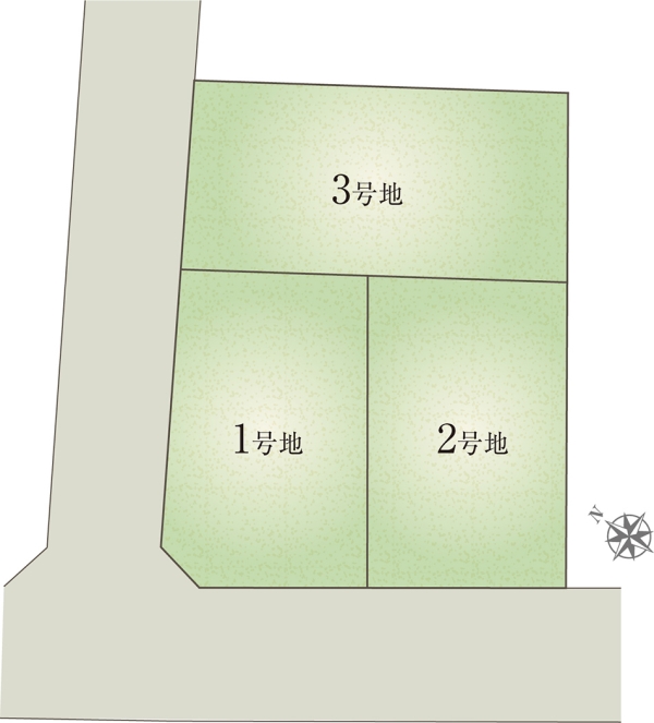 | 建物面積 | - | 土地面積 | 172.11m2(1号地)、171.47m2(2号地)、200.69m2(3号地) 私道負担なし |