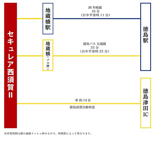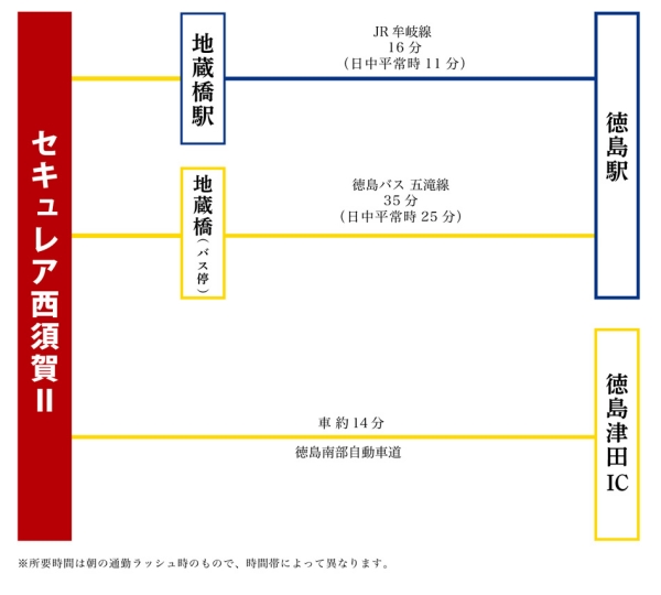 JR牟岐線「地蔵橋」駅 徒歩6分~6分 JR高徳線「徳島」駅 徒歩79分 |